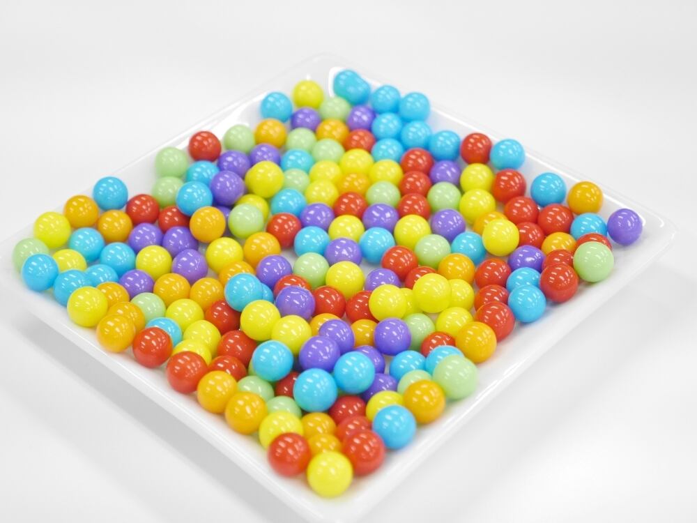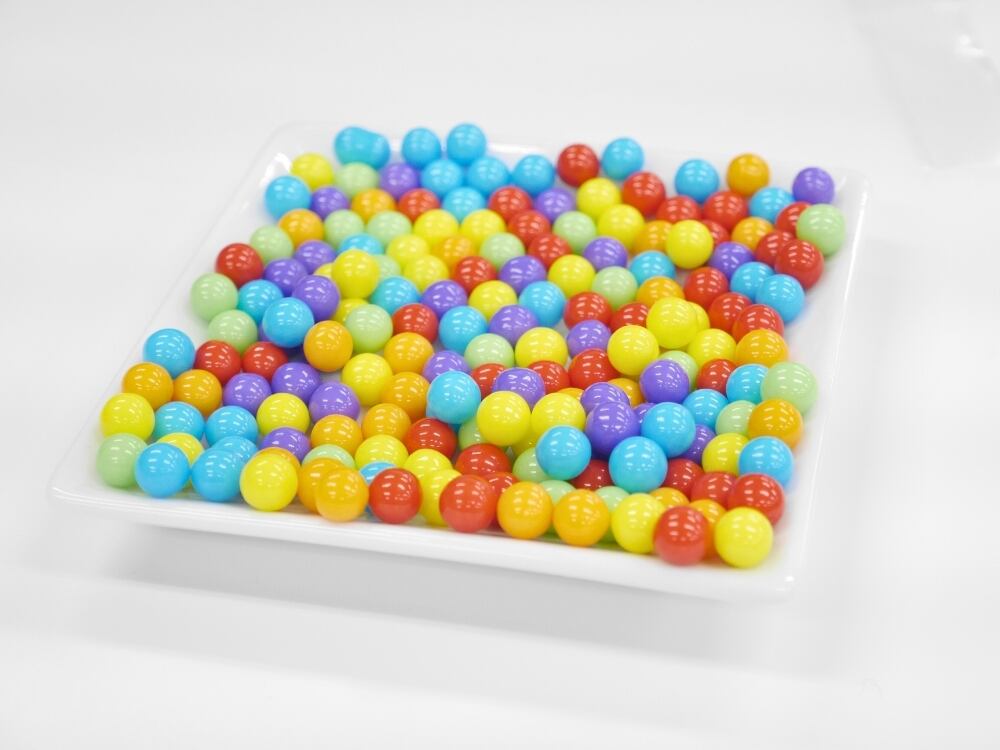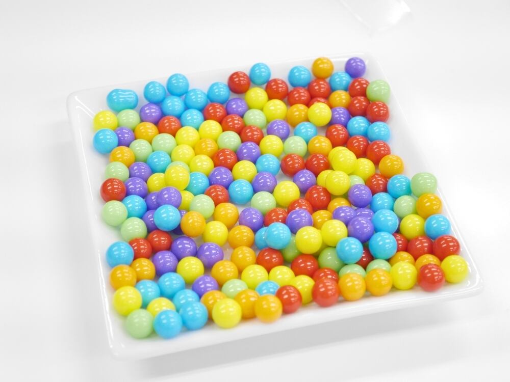 パイナップル、リンゴ、ブルーベリー、グレープ、オレンジ、それぞれの味が楽しめる小さな球状のタブレットです。